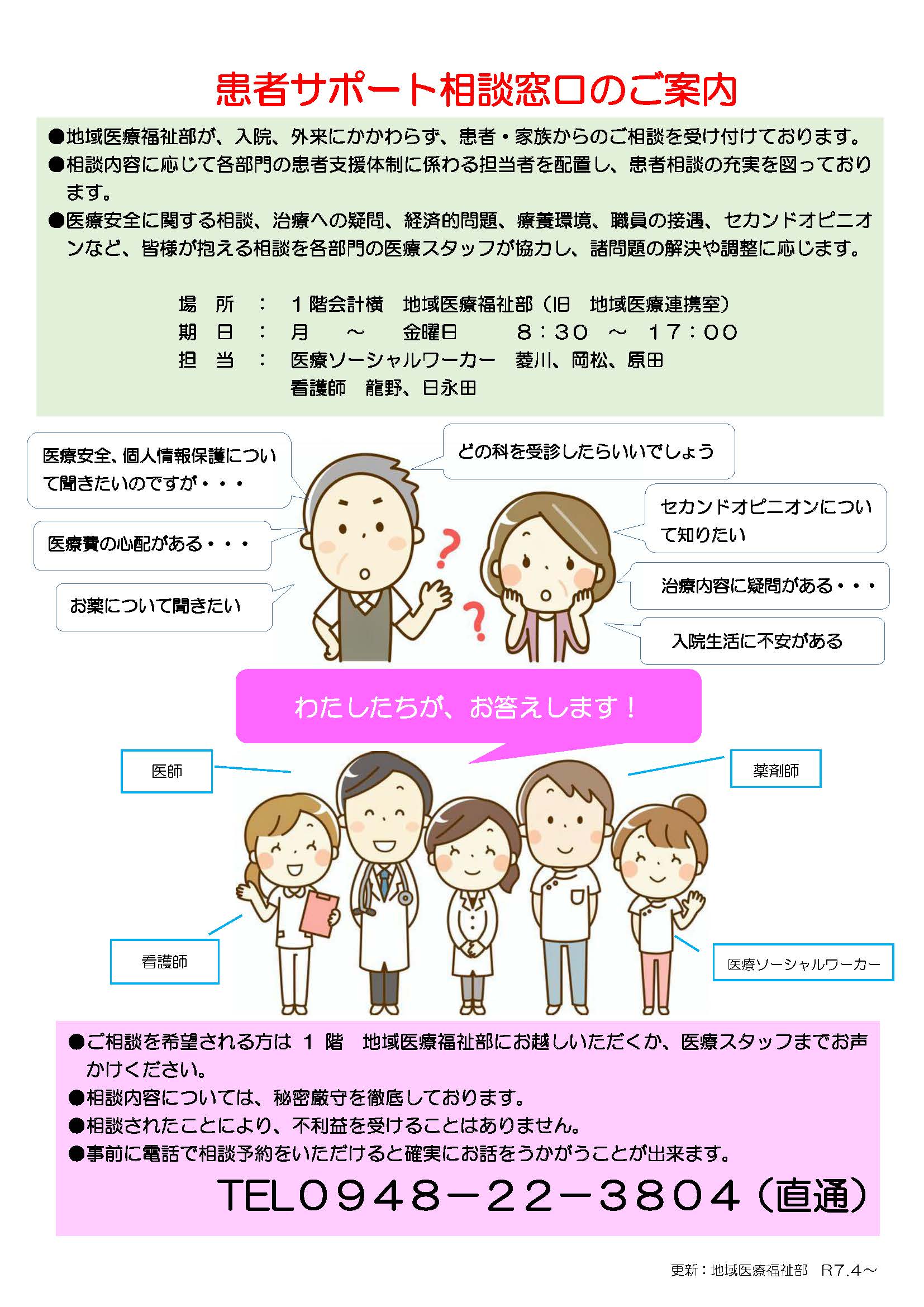 済生会飯塚嘉穂病院 地域連携福祉事業課 0948-22-3804(直通)